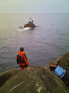 24日、阿南市伊島でチーム鬼掛・チームシーガー四国・MFG東四国・釣研FG徳島の4チーム親睦大会に参加してきました。参加者は99人!天候雨…またしてもつらい日になりましたが、最近好調の伊島だけに期待してくじを引くと、行きたくない磯周り(泣)けど、親睦大会の為気楽な気持ちで渡船にのり出船しました。上がった磯は桶バエ。クラブ員の笹田副会長や渡辺さんにアドバイスをもらい頑張りましたが、結果小さなグレ2匹とイサギ、カツオでした。グレ釣り大会の為2匹の計量で、またもや撃沈!こんな事ならイサギをもっと釣っておくべきでした(笑)優勝はチーム鬼掛の一楽さんでした。おめでとうございます。そして雨の中世話をして下さった大会役員の皆さん、協賛して下さった皆さんお世話になりました。