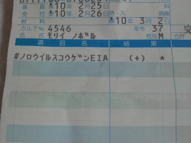 ノロウイルス反応(+)・・・・