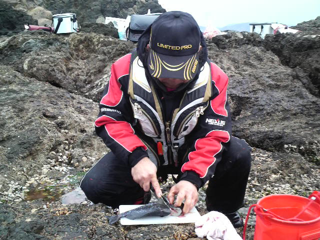 釣った魚を磯の上でいただく。釣り人の醍醐味ですね♪