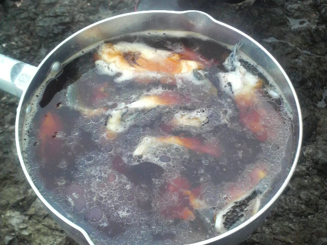 釣りが終わって再び仲間と合流。ニギリの○○出しはやられてしまいました(涙)