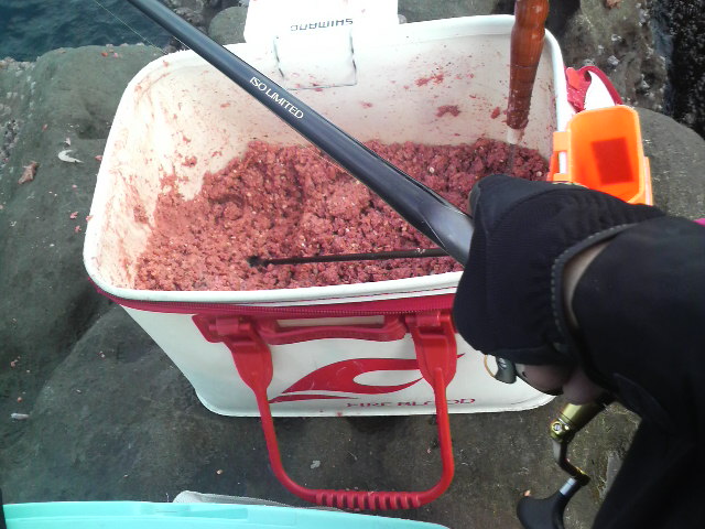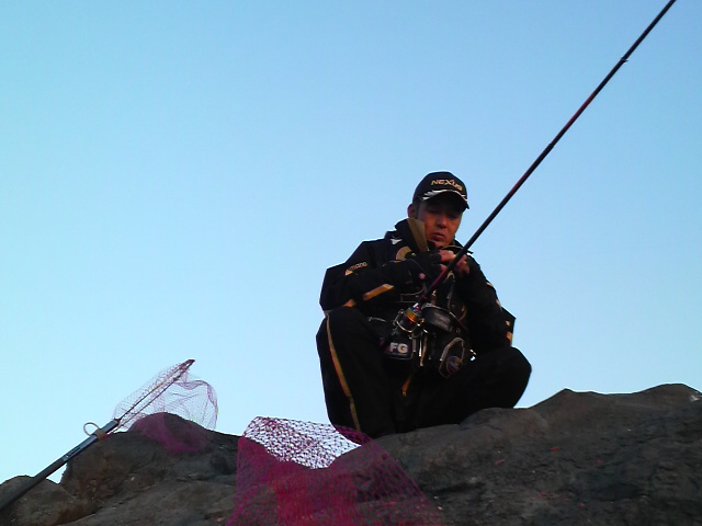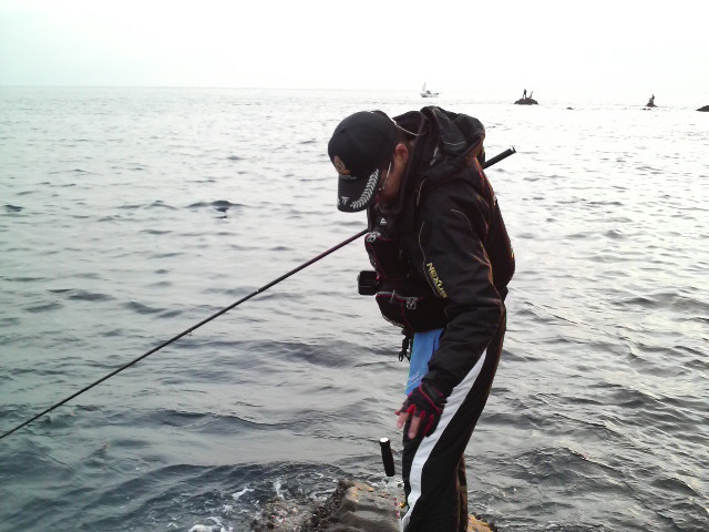 名礁8番だけに期待は十分…といきたいところでしたが、水温低下と潮の動きと腕が悪いもんで、本命の満ち潮でサッパリ(>_<) やっとガガネ1匹。