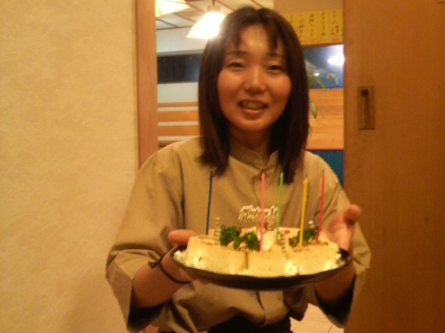 終盤に、お誕生日の花本さんへのバースデーケーキが振舞われましたが、メンバーは既にお腹一杯・・・・