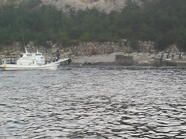 続いて、波はありませんという船頭さんの言葉を信じて各選手、乗船名簿に記入後、磯取りが始まりました。