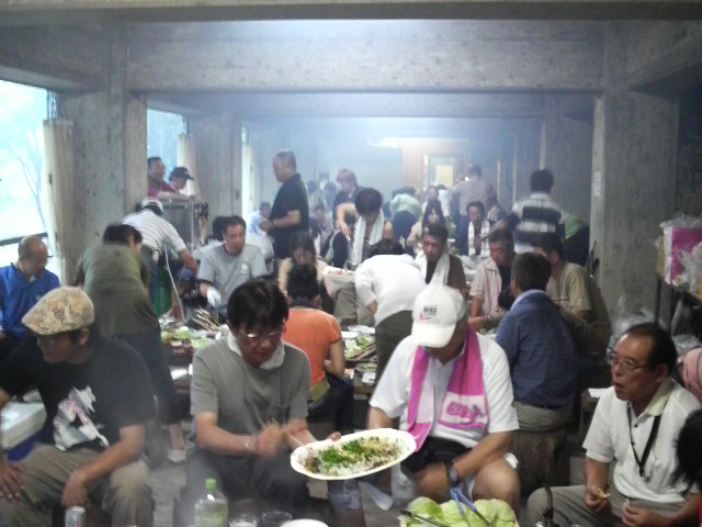 濁流、大雨の中、体を寄り添うように会場から外へ出ず、というかとても外へ出れませんって感じの中、江頭顧問が焼きそばを始めます!