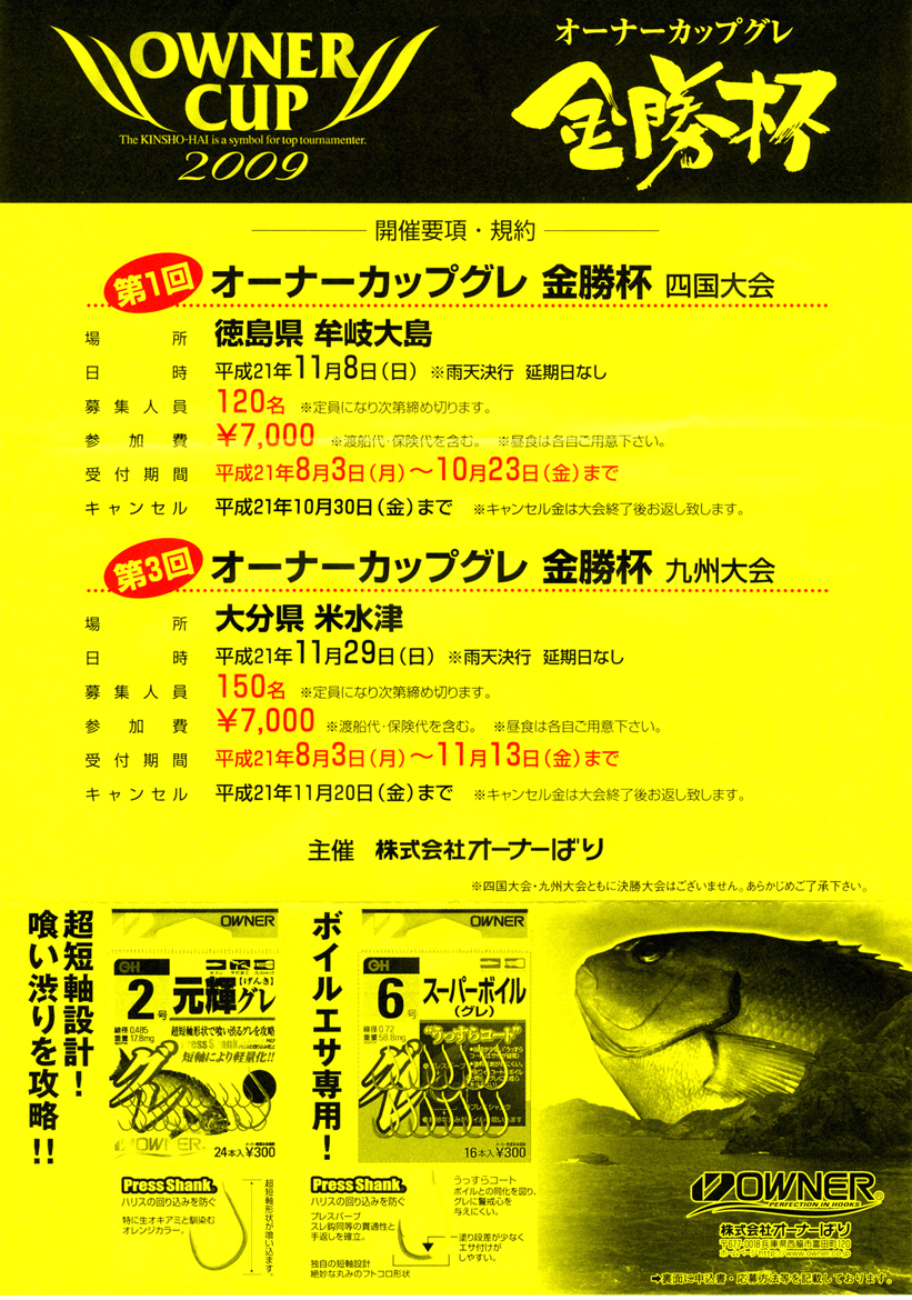(株)オーナーばりさんが主催するグレ釣り大会(オーナーカップ金勝杯)ですが、以前までは大分県の米水津だけで開催をしておりました。