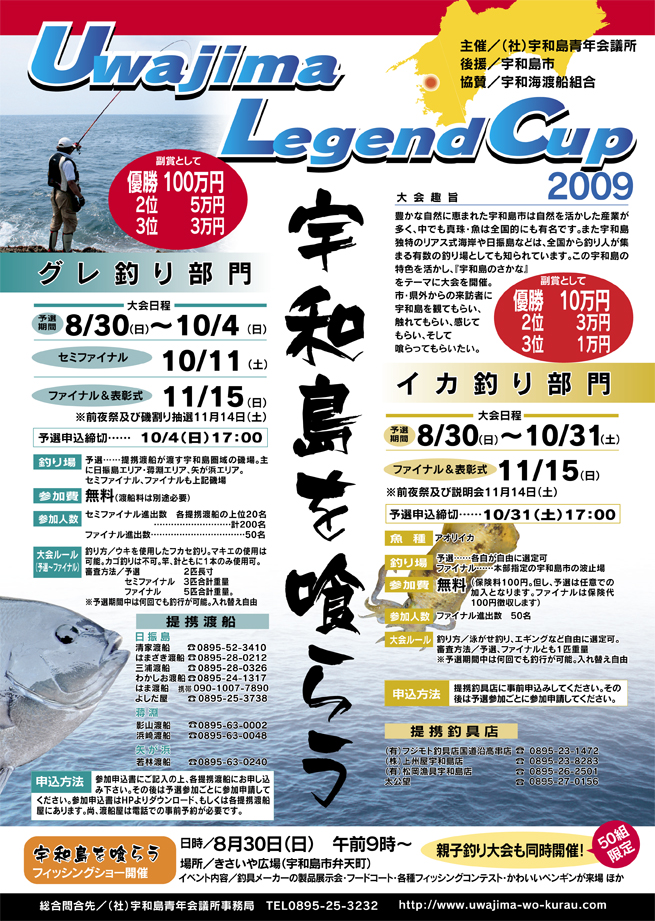 全国から釣り人が集まる有数の釣り場「宇和島」を舞台に8月30日からいよいよスタートとなるビッグイベントです。