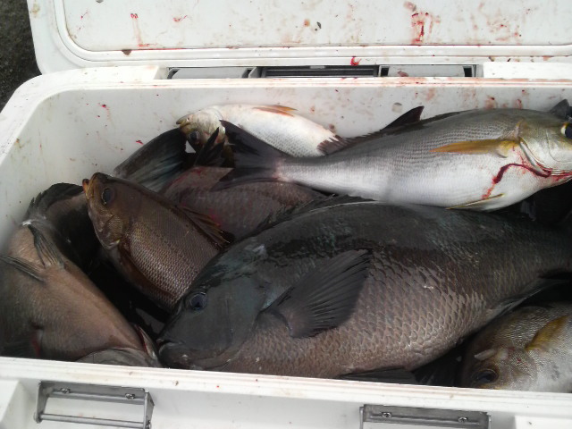 しょうもないような磯かな感じでしたが違う意味期待を裏切りグレ、イサギでクーラーは満タンになりました(^o^)
