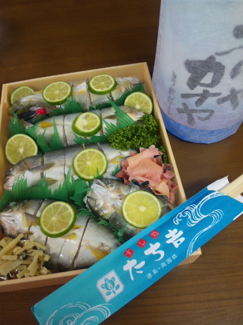 柚子の酢と絡み合った、見事な姿寿司を5尾も頂いた。