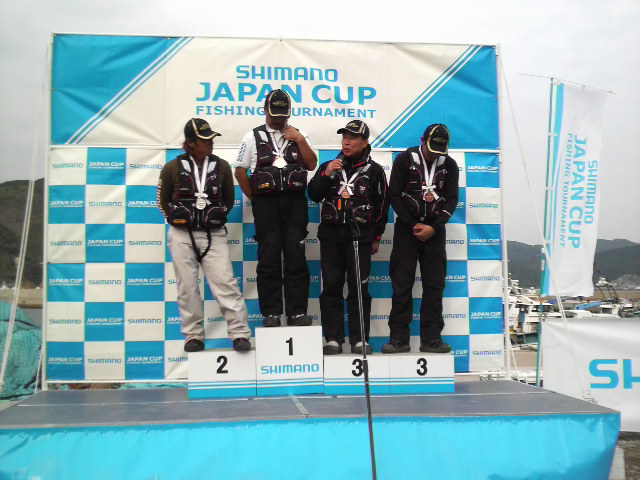 …それからは大爆釣!! 後半戦だけで10匹は釣ったんじゃないかな…終了時間前の顧問が釣った大型を見たとき… 決まった気がした。港へ戻り計量、やはり江頭顧問に軍配! 参った、参りましたとしか言えない。辺りは真っ暗となっていた!帰路のバス内では私も顧問もくたくた… 当然各選手ともそうであったに違いない! お風呂に入り2日目の懇親会開始、準決勝の抽選で、今をときめく平和卓也選手と顧問との対戦が決まった! 翌日の準決勝戦で顧問は敗退してしまったものの、3位入賞を決めた。いよいよ決勝戦、九州の柴原啓二さんと平和卓也さんとの戦い。両者の戦いを後ろから観戦させていただいた。あっという間の2時間であった。お互いキーパー数を揃えての計量!柴原啓二さんが頂点に輝いた!感無量ですとコメントを繰り返した柴原さんの目には涙が… 表彰式も無事に終わり、各選手帰路の準備、空港へのバスを待つ。