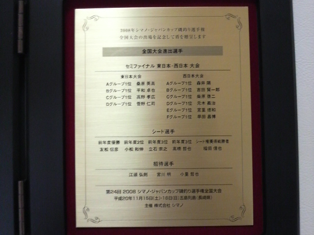今大会、自分自身凄く価値のある経験となった。釣りを始めた時によくビデオを観たあの高橋哲也さんと普通に会話をさせてもらっている、宮川明さんとの懇親会後の雑談や、高野孝広さんからの攻撃(笑)、平和卓也さんとのお酒!JFTチャンプの小松和伸さんとのウキ講習などなど…また同部屋の福田信也さんにも大変お世話になりました!18人全ての方達にお礼を言いたいと思うと同時に、ここまで育てていただいた江頭顧問に感謝したい、そしていずれ師匠に恩返しの出来る結果を残したいと思います。師匠、気長にお待ちください(笑)。シマノスタッフの皆様、選手の皆様、メディアの皆様、大変お疲れ様でした、そして本当にありがとうございました。